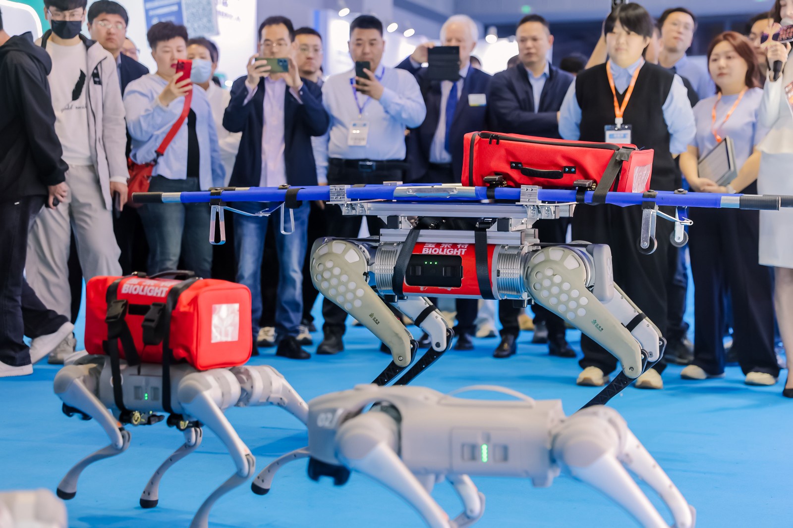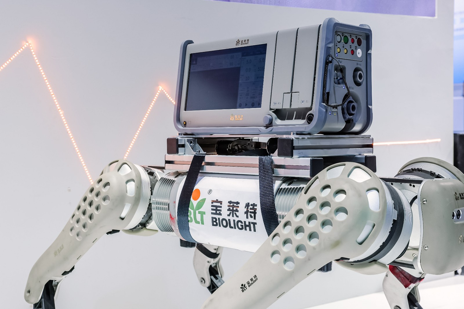 完美电竞首日表现印证了这一趋势:四足机器人急救解决方案作为全场焦点,搭载转运监护仪、心电图机等核心设备,以展现了“设备随行、救治前置”的急救新范式。