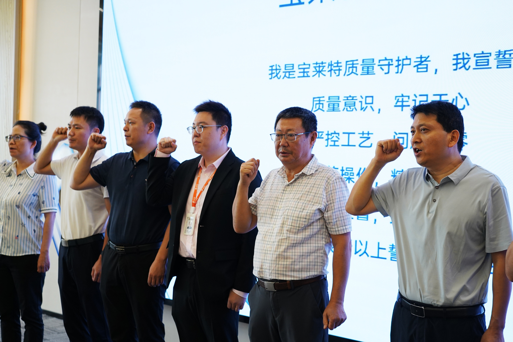在董事长掷地有声的号召后,大会迎来了激动人心的全员质量誓言宣读环节。全体与会人员肃立,在领誓人的带领下,以铿锵有力的声音庄严承诺恪守质量准则、履行质量责任,将“质量即生命”的信条内化于心、外化于行,现场气氛庄严肃穆,彰显了完美电竞人捍卫质量的坚定决心。这份誓言不仅响彻会场,更将成为整个质量月乃至未来工作中的行动指南。